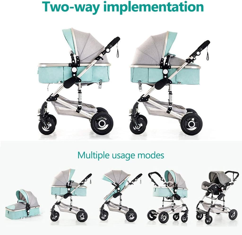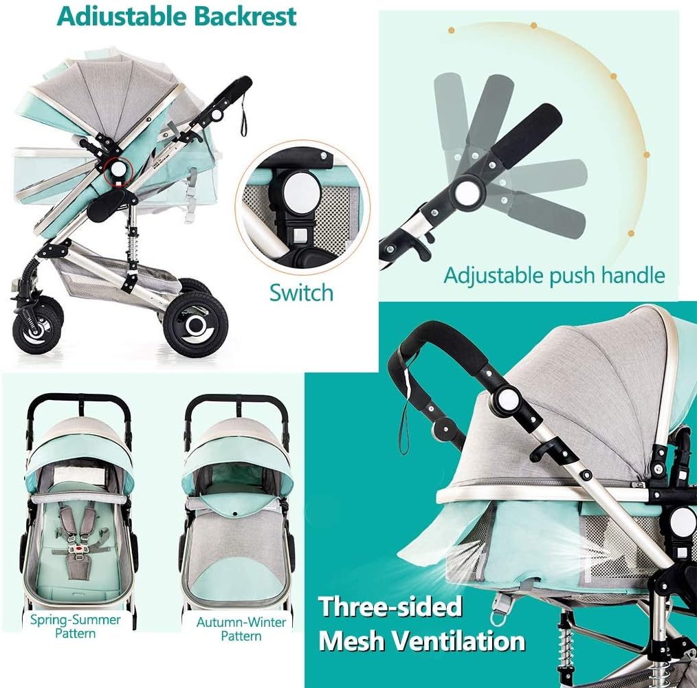 - Made of luxurious PU Material, sturdy and anti-rust aluminum alloy and breathable fabric , anti-rust and durable. .Multi-directional shockproof control, including reinforced spring mounted on the stroller body and front wheels to absorb vibrations. This double protects baby and gives you peace of mind when you push on a rough road.