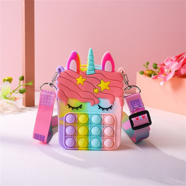 Novel and cute design ❤️This anxiety toy bag is made of SAFE natural silicone gel. It is sturdy, durable, non-toxic and tasteless, safe and healthy, feels soft and comfortable, easy to clean. Unicorn shape, modern and dazzling color, dreamy and cute, let your child be the envy of others.