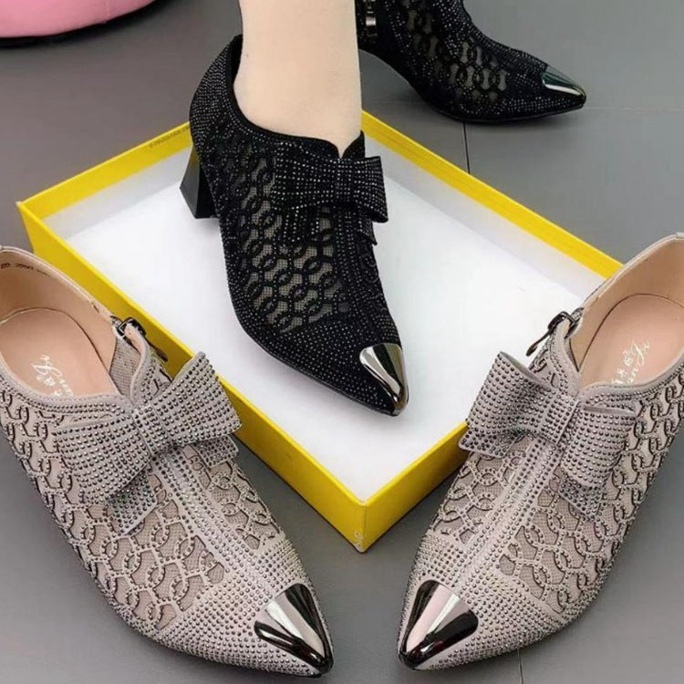 Ladies Luxury Mesh Side Zipper Pointed Toe Shoes