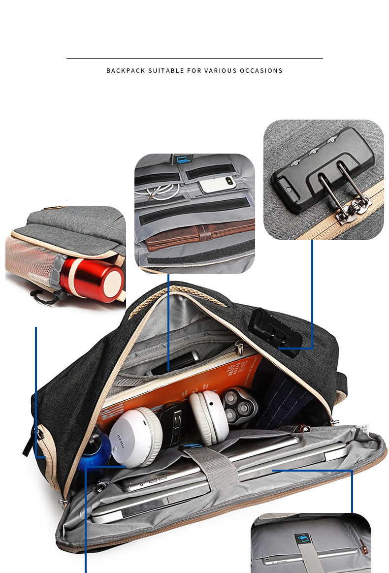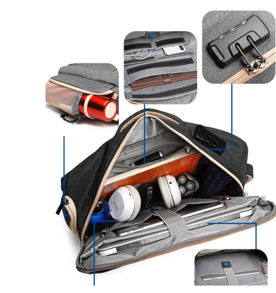 - Contents: Main Pocket / Front Pocket / Inside units Pockets / Laptop Bag / Phone Bag/Side Bag