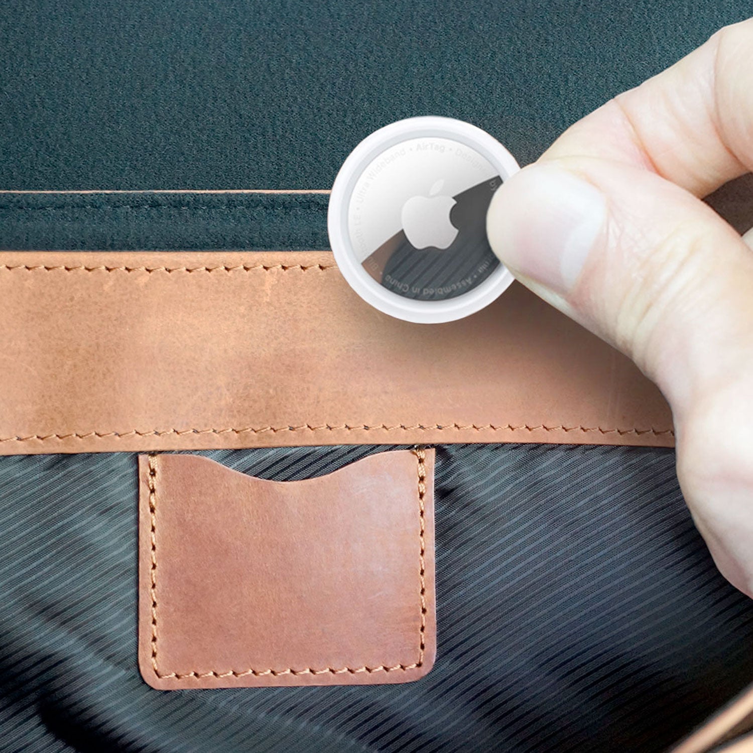- Special internal Apple Air Tag tracker pocket