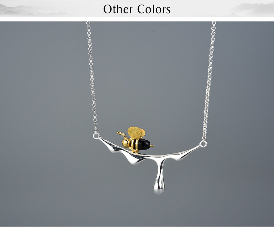 Bee and Dripping Honey Pendant Necklace