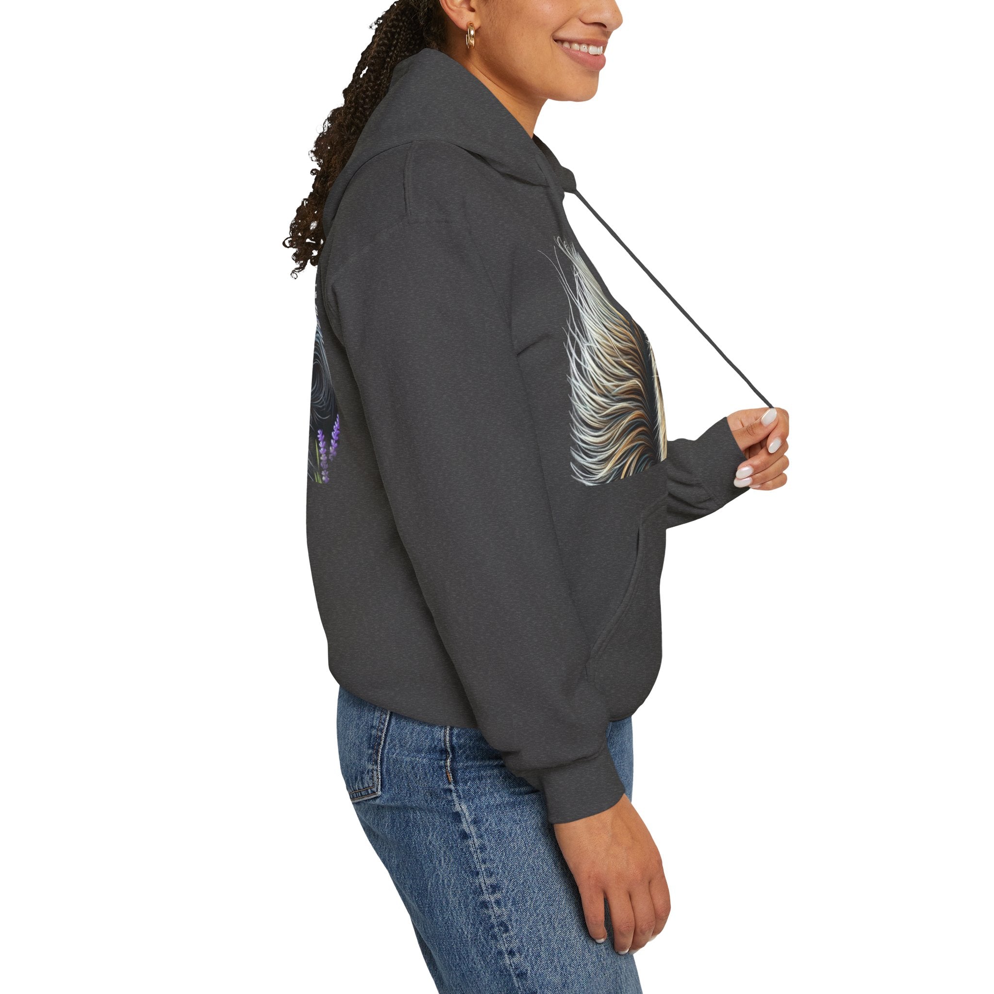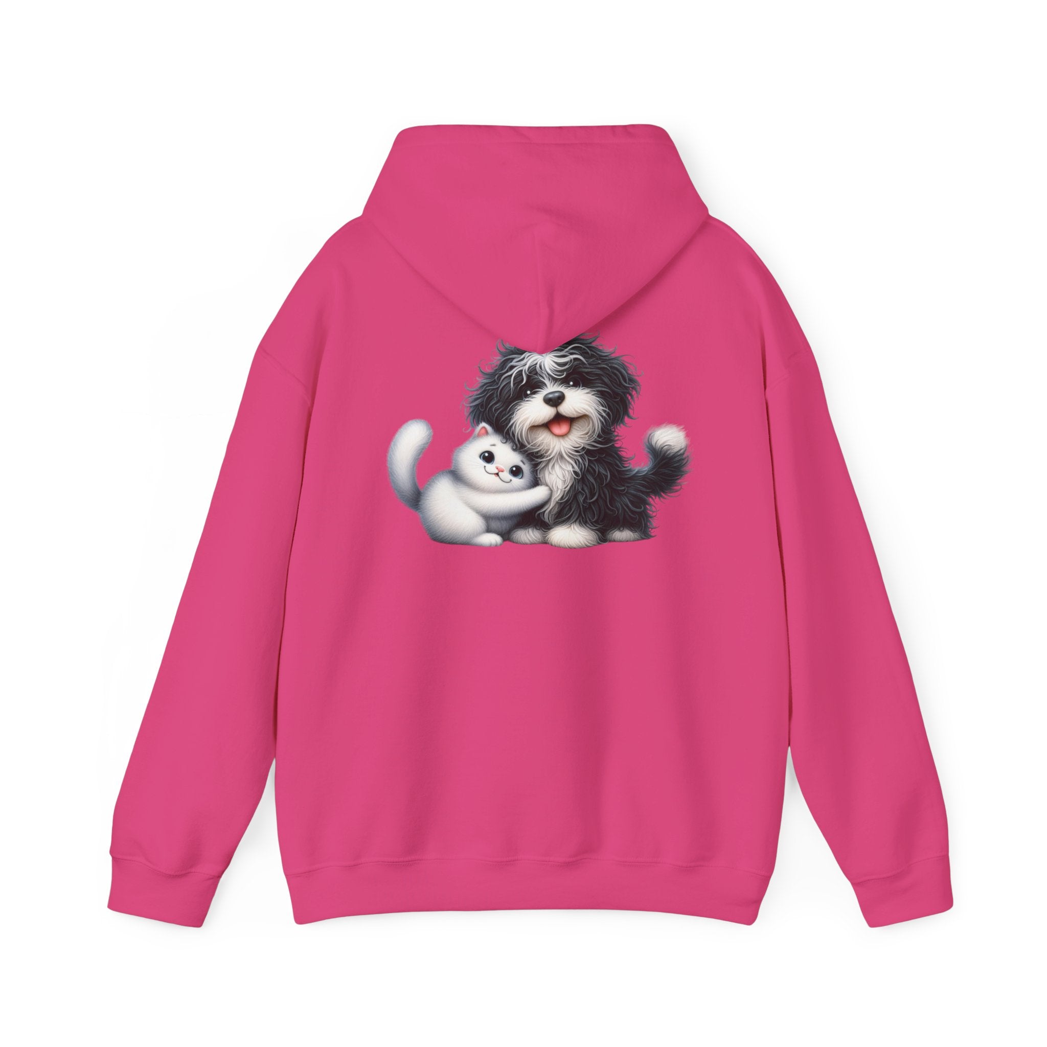 This unisex heavy blend hooded sweatshirt is relaxation itself. Made with a thick blend of cotton and polyester, it feels plush, soft and warm, a perfect choice for any cold day. In the front, the spacious kangaroo pocket adds daily practicality while the hood's drawstring is the same color as the base sweater for extra style points.