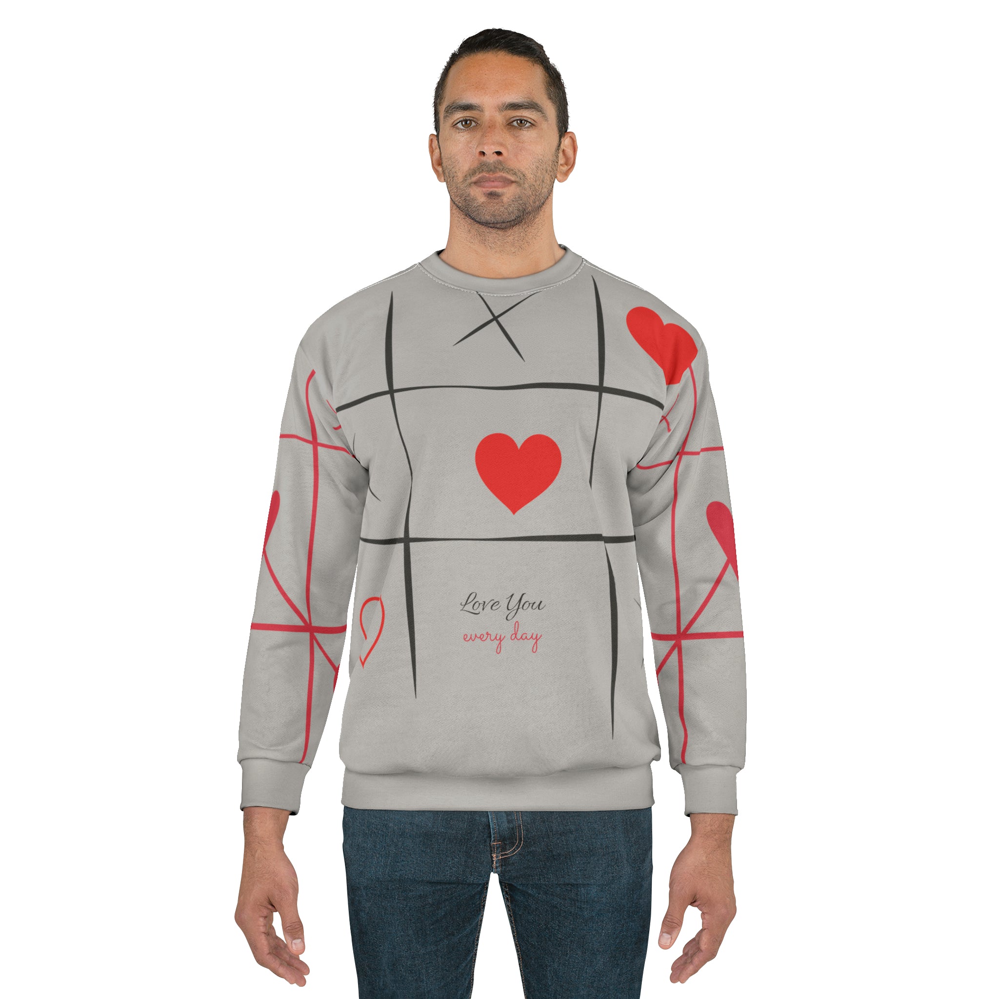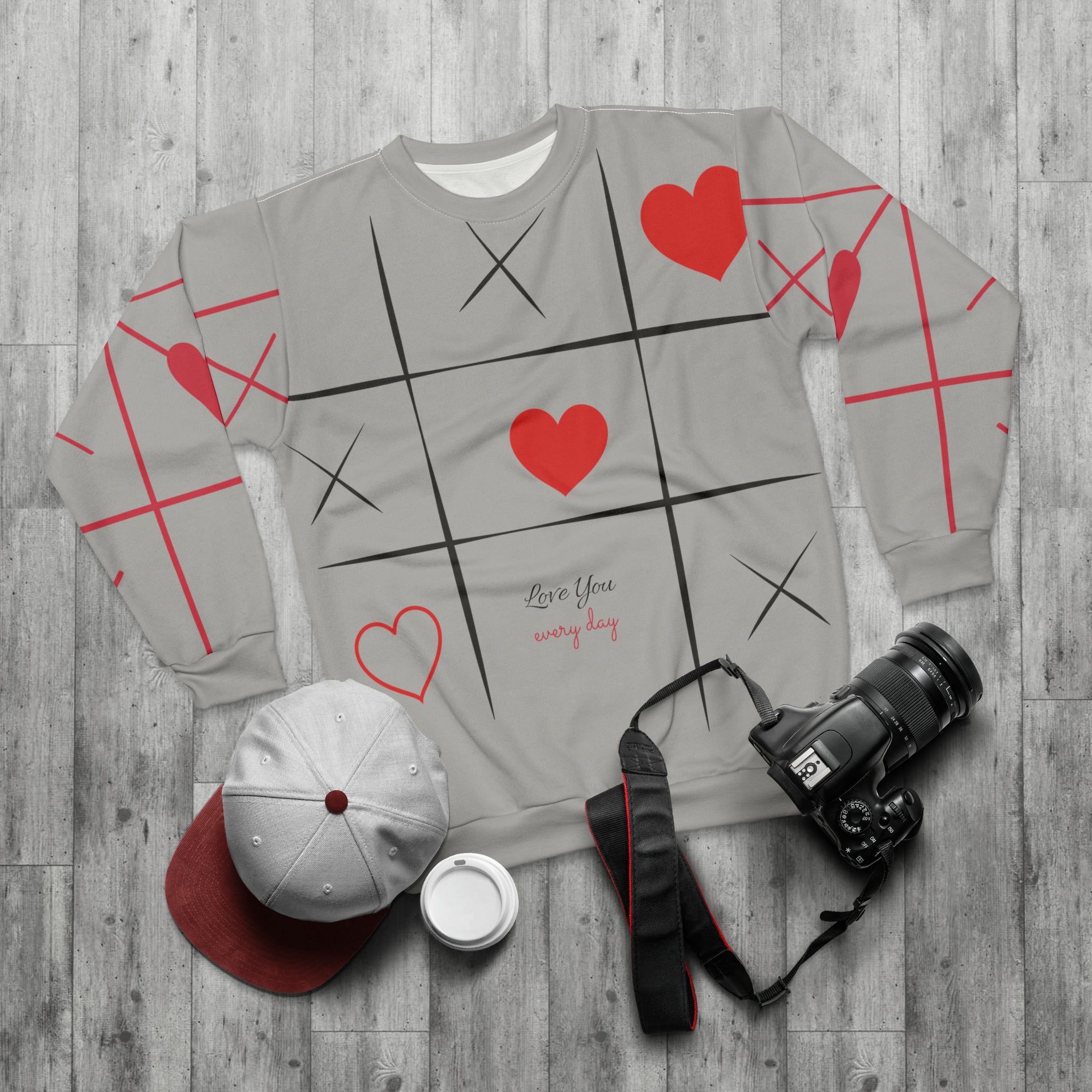 Unisex Sweatshirt (AOP) - Tick-Tack-Toe Hearts