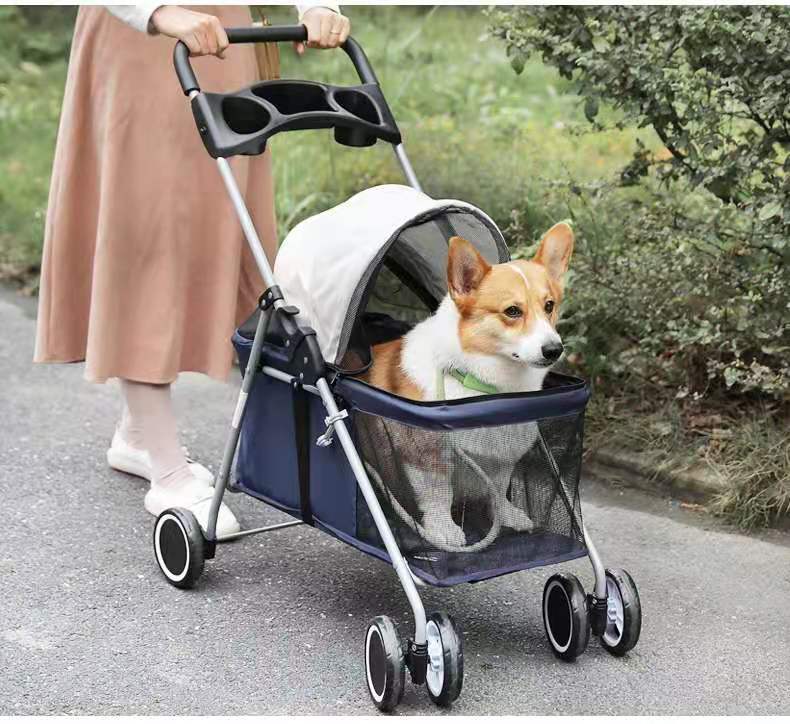 A stroller can be helpful for elderly dogs or those with injuries or physical limitations. Dogs who can’t safely withstand the heat, such as Bulldogs and Pugs, may also benefit from the shade a stroller provides. A stroller can make running errands with your dog more convenient. It folds into an ultra-compact size in seconds.