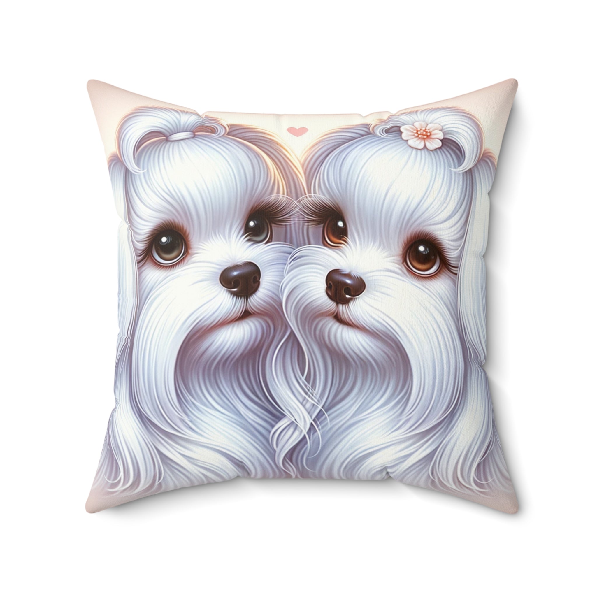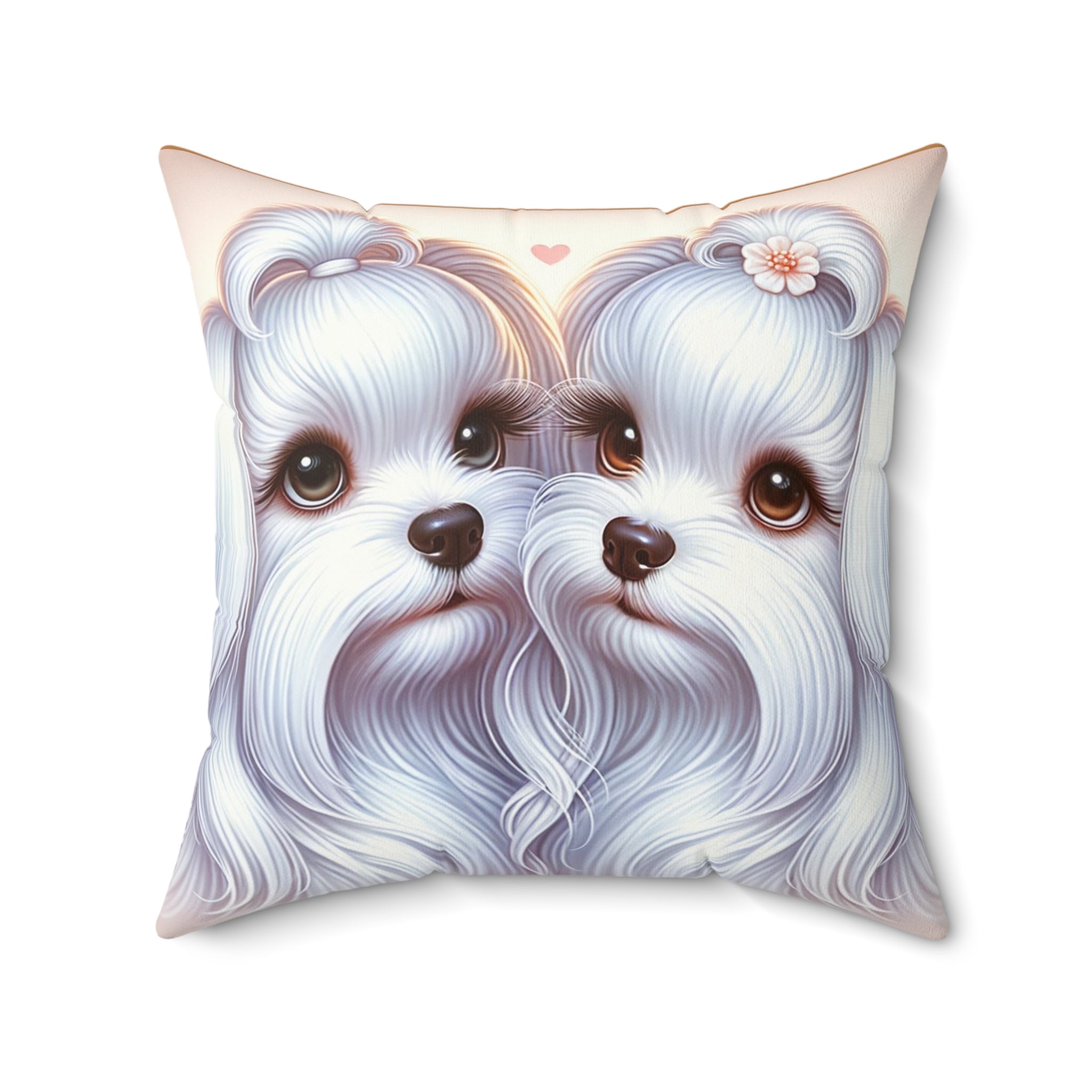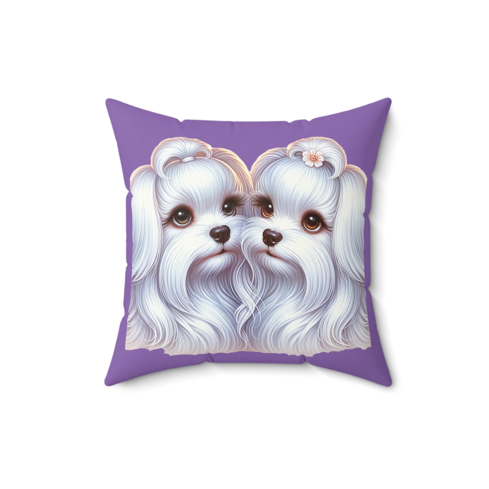 Spun Polyester Square Pillow - Maltese Lovers