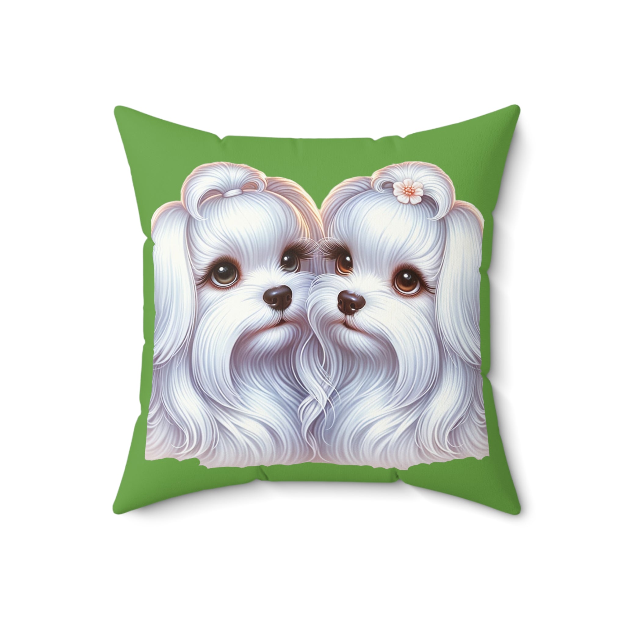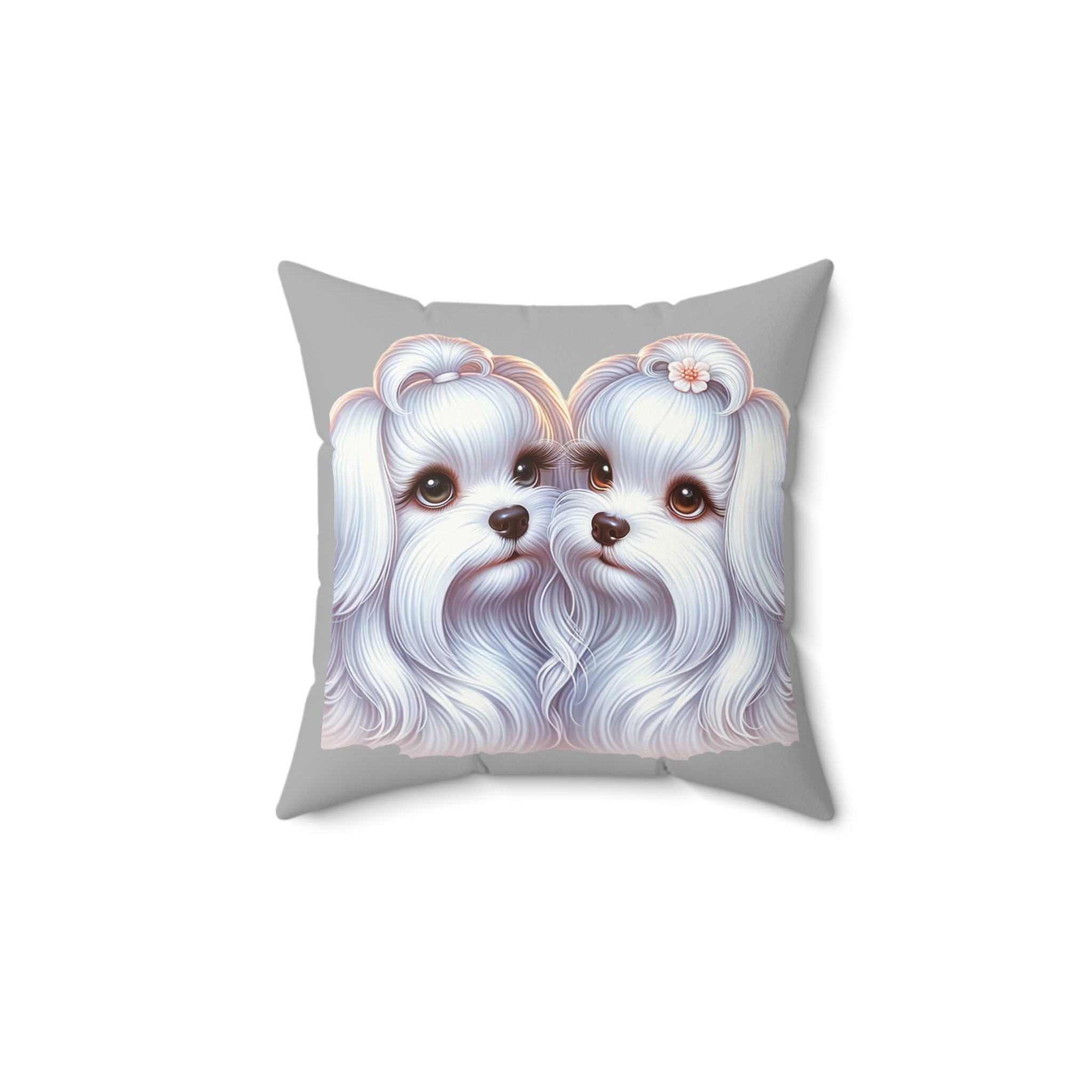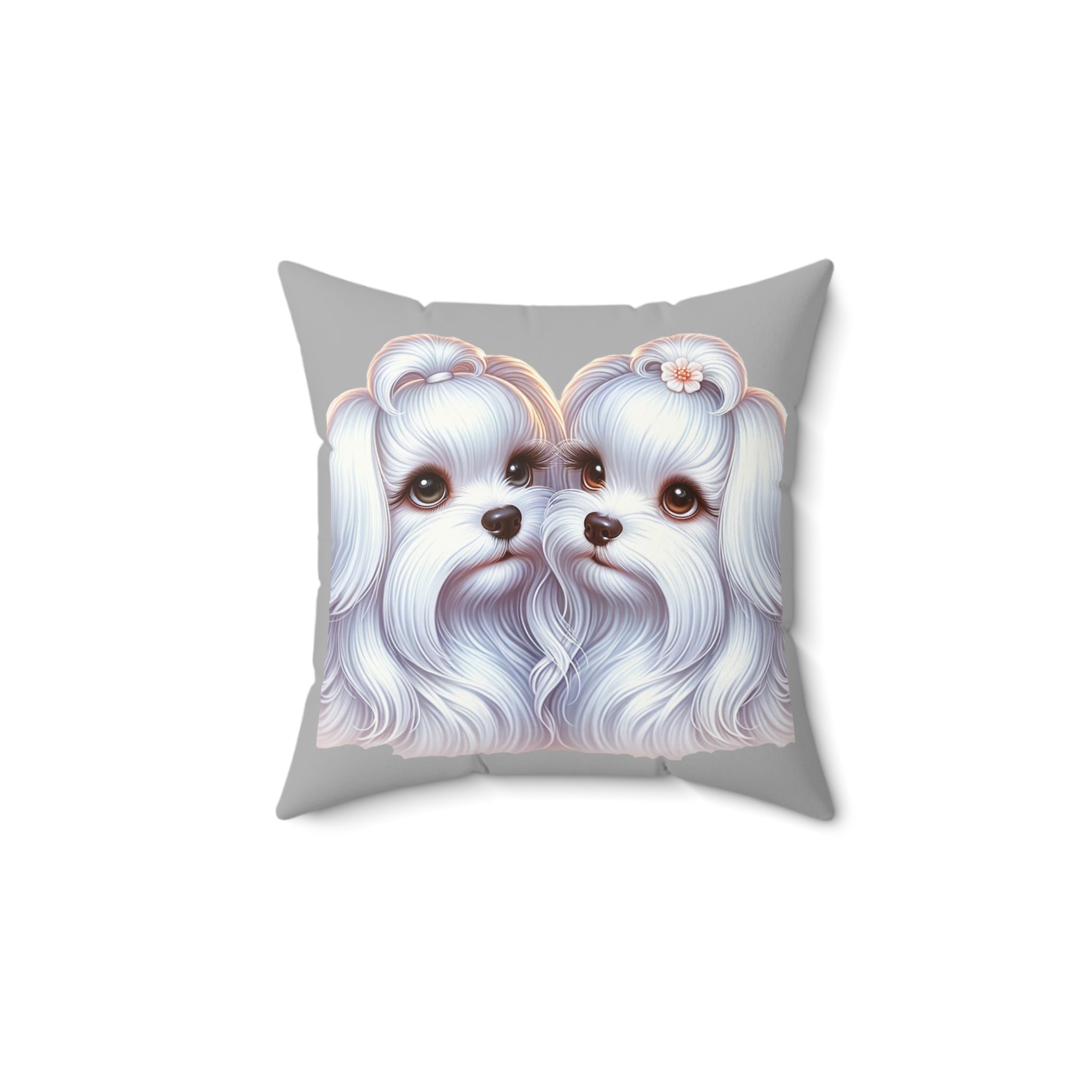 Spun Polyester Square Pillow - Maltese Lovers