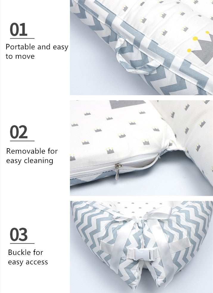 Use the infant nest as a bassinet for a bed, baby lounger pillow, travel bed, newborn pillow, changing station or move it around the house for lounging or tummy time, making baby feel more secure and cozy.