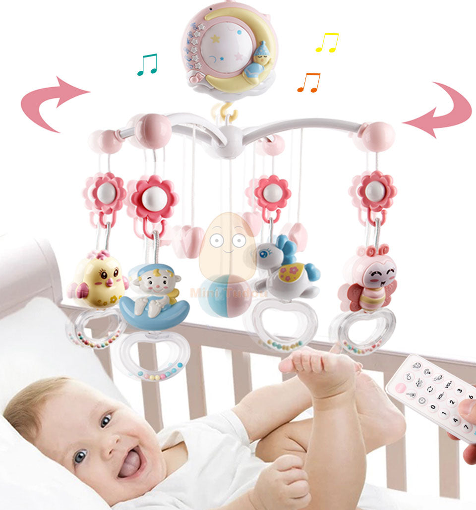 Remote can control all the functions in the music box. After your baby falls asleep,you can use the remote to turn off the mobile.