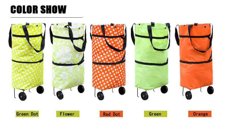 Innovative Fashion Design: This shopping bag has two foldable wheels so that you can switch between shopping cart and shopping bag freely just as you need.  Easy storage & carrying.