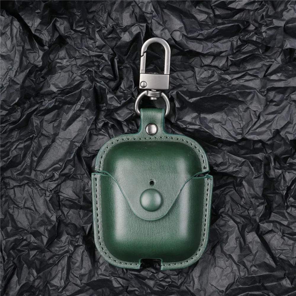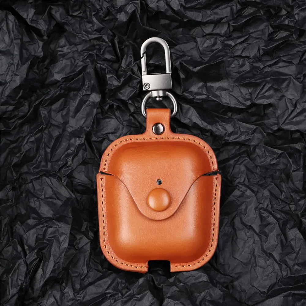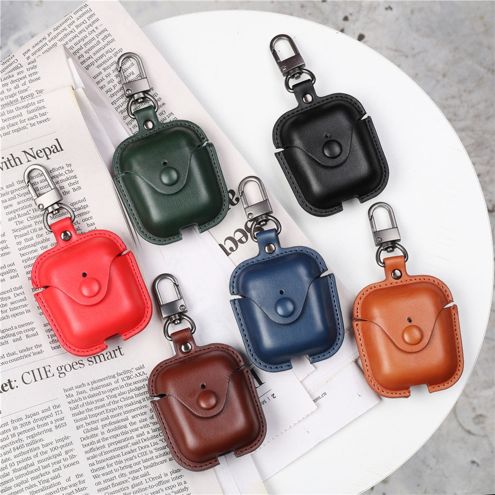 Luxury Leather Airpods 2 1 Case with Keychain