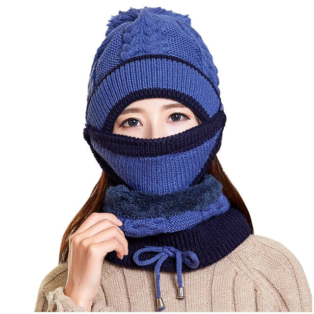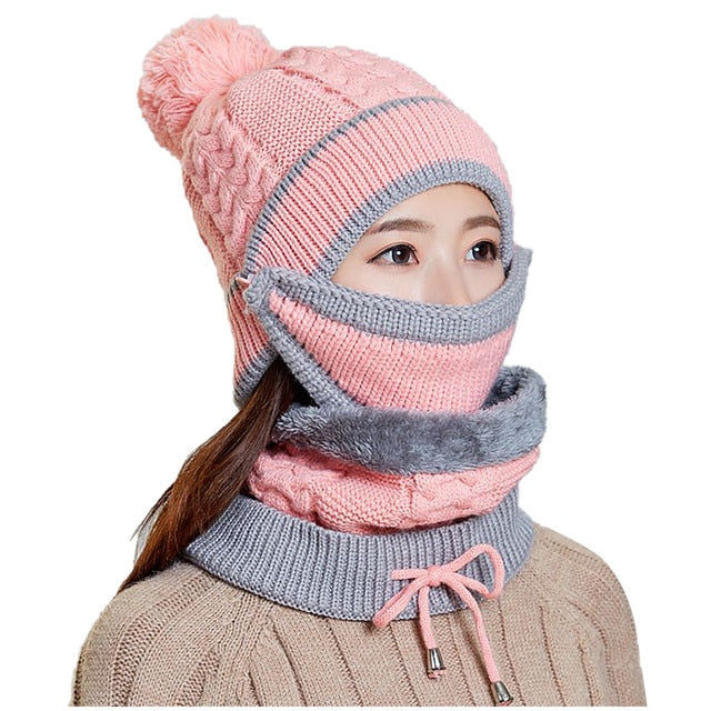 A Matching Knitted Hat, a Scarf and a Mask Set.