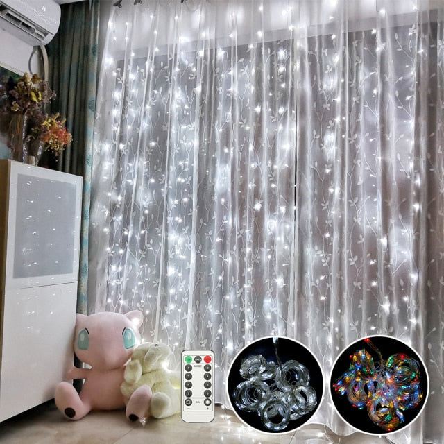 POWERFUL REMOTE CONTROL: Come with a multifunction remote to control the Power On/Off, 8 Lighting Modes and set Timer, Brightness. fairy curtain light also has a memory function for your next convenient use.