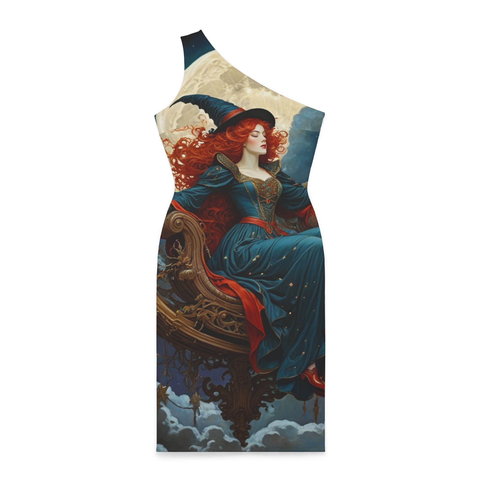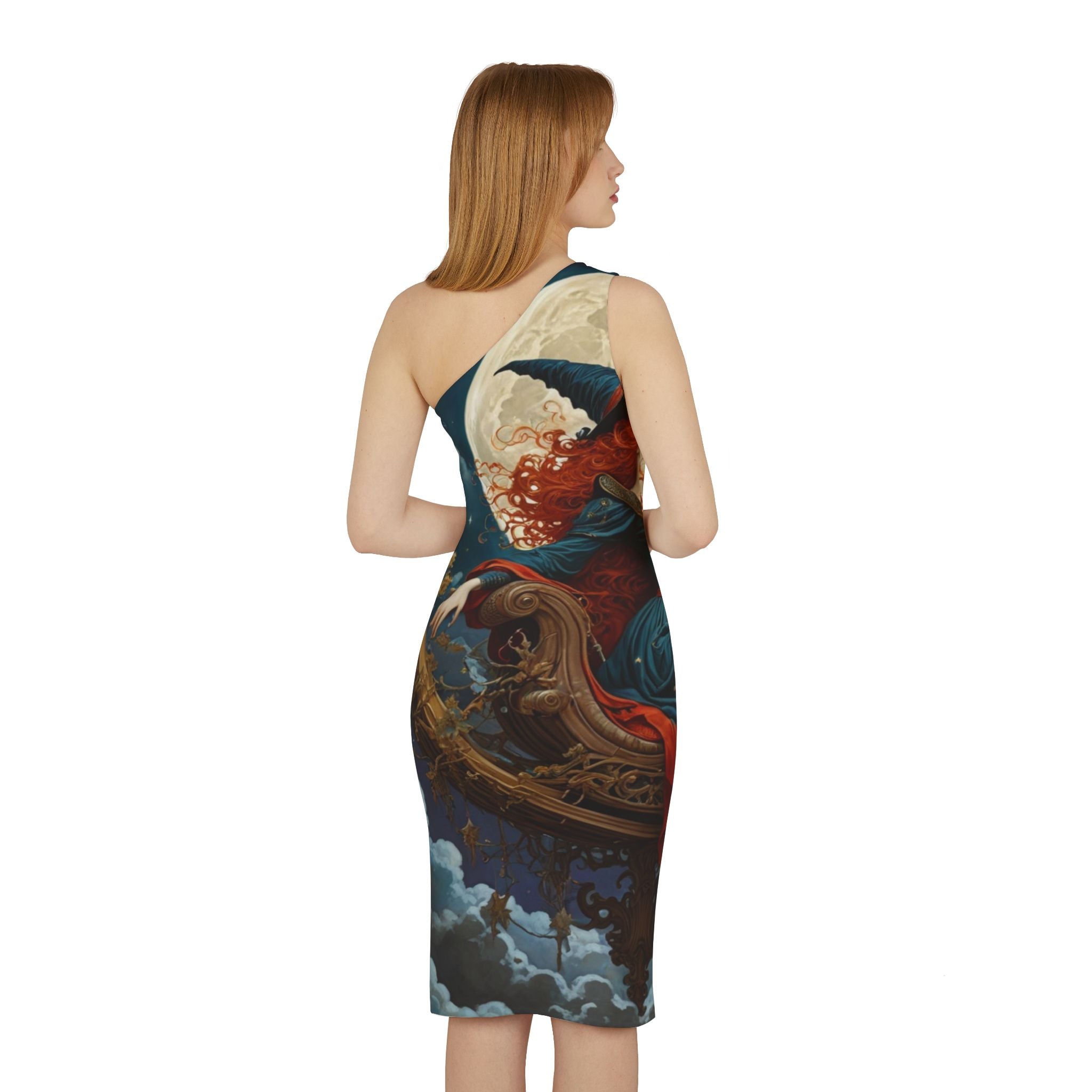 Embrace a unique kind of elegance in this one-shoulder dress featuring a fitted silhouette and a knee-length straight hem. With a sleeveless design and true-to-size fit, it's perfect for any occasion. The hidden side 14" zipper ensures easy dressing, while the YKK invisible nylon upholstery zipper offers a seamless finish. Featuring non-separating, closed-end construction with an automatic lock slider in white, this dress is both functional and fashionable. .: Material: 95% polyester, 5% spandex .: Medium fabric (7.5 oz /yd² (255 g/m²)) .: White side zipper .: Fitted silhouette .: Knee length .: Thread color automatically matched to design (black or white) .: Assembled in the USA from globally sourced parts