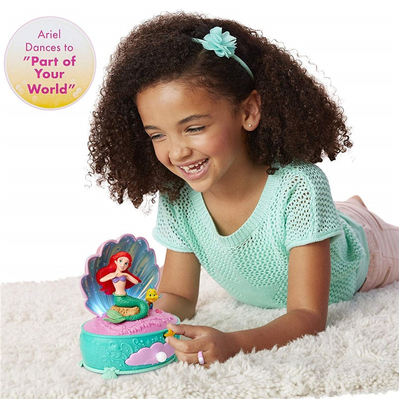 Accessorize with the costume Pearl ring, or store your treasure away in the handy drawer! Celebrate Ariel's 30th anniversary with this precious keepsake musical jewelry box. Plays "part of your world" as Ariel flips her fin. Features dazzling lights, music and movement.