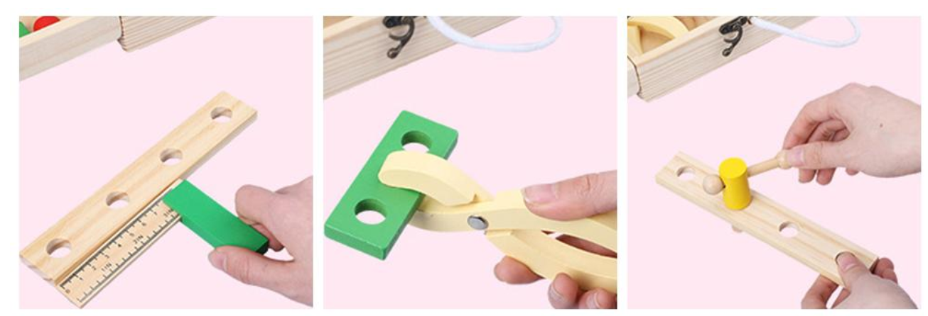 4、Exquisite Toolbox: The package contains a wooden durable portable storage box, which can be carried for it features a handle. This situation allows the child to organize his or her tools.