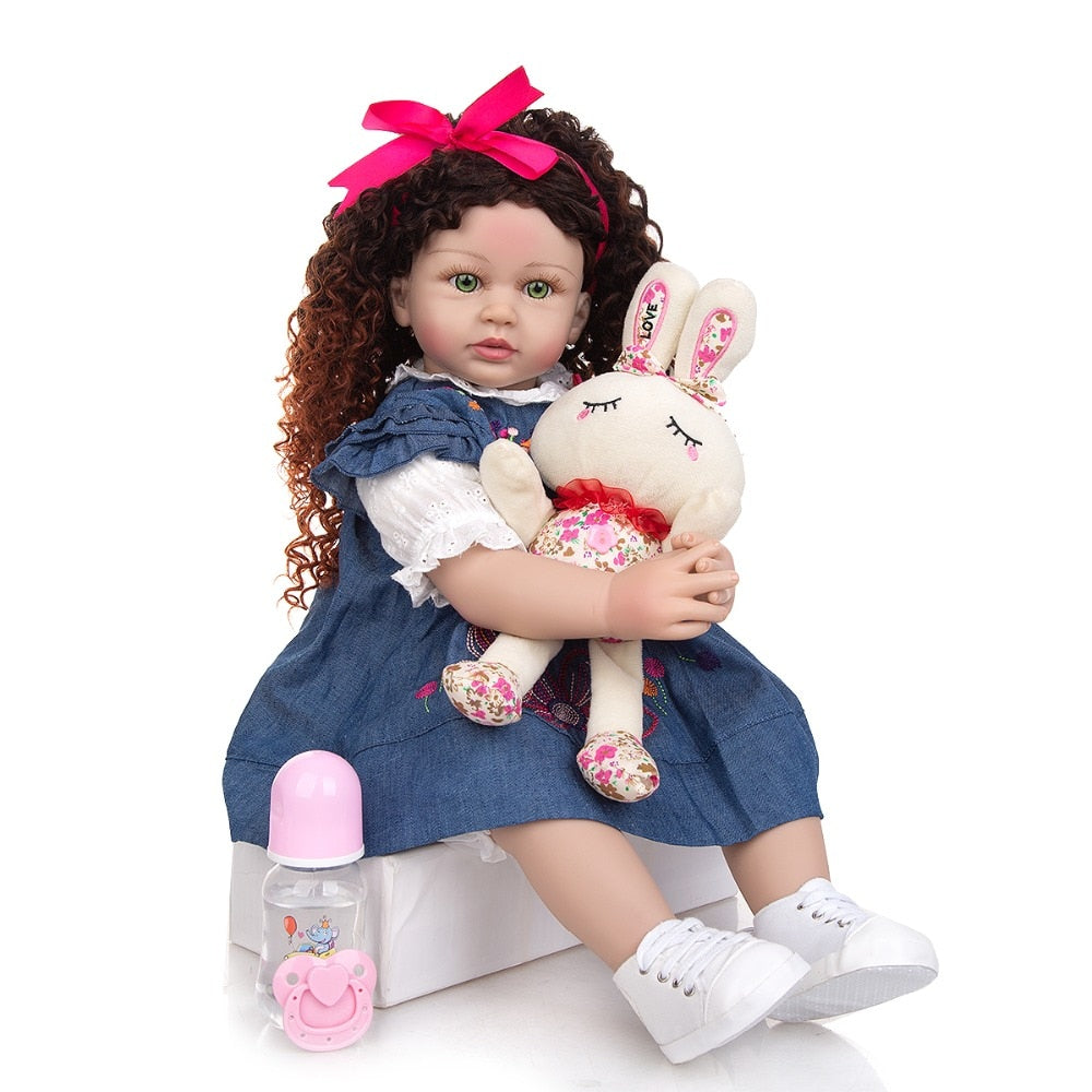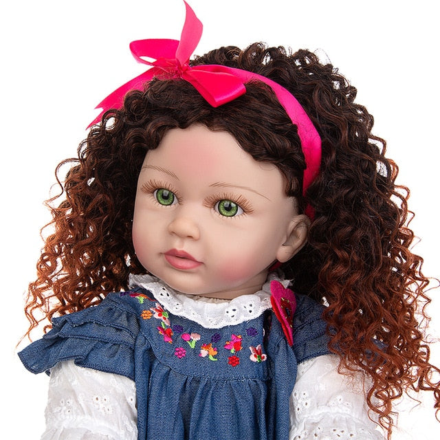This adorable doll is made of Soft Silicone Vynil and the cloth body is stuffed with PP Cotton. She has the perfect size to resemble a lifelike little girl measuring 24 inches. The doll limbs can be active, she can sit or lie,but can not stand,speak or feed.