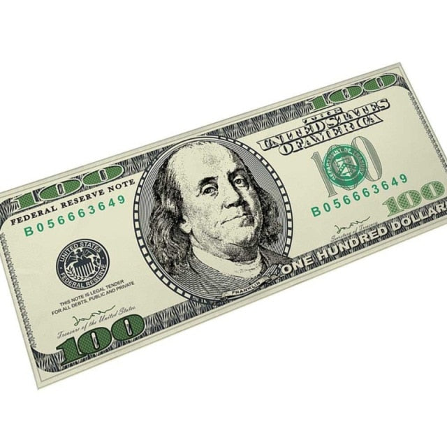 Visualize money with this $100 Bill Door Mat. A vibrant life-size replica of the world-renowned one hundred dollar bill printed on a low profile, soft to the touch runner rug. The bright artwork creates an inviting entryway to welcome all your guests.