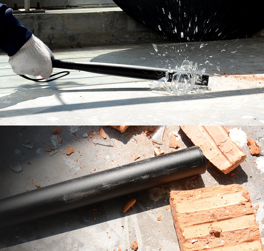 At just over 17" with a rubber grip, this Bat is FANTASTIC!.  The intimidating stun power arcs brightly and loudly enough to dissuade most confrontations before they begin!  Featuring a super bright 500 lumen zoomable flashlight, opponents are easily blinded and disoriented.